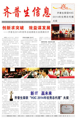 新IT 贏未來 齊普生榮獲“H3C 2014年優秀總代理”大獎